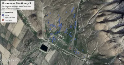 | Кошумча маалымат | Жолболду II кургандык комплекси болжол менен 95 кургандан жана 2 айылдан турат. Кургандардын жайгашуусунда жалпы же так системасы жок. Жалпысынан кургандар түштүктөн түндүккө карай созулуп, айрым жерлерде көбүрөөк же азыраак туураланган чынжырларды түзөт. Калган учурларда алар салыштырмалуу системасыз жайгашкан. Кургандардын насыбы негизинен таш-жерден жасалган, тегиз, план боюнча тегерек формада, диаметри 1ден 14 метрге чейин. Көпчүлүк насыктардын борборунда баюу казуулардын издери болгон түшүндүрмө—байыркы заманда жасалган тоноочулук казуулардан калган тешик бар. |