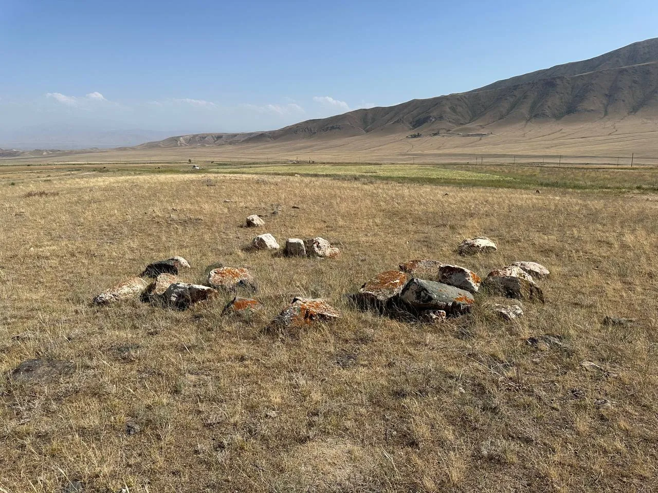 | Техникалык абалы | Көрүстөн айыл чарба багытындагы жерлерде жайгашкан. Кургандардын бардыгы тигил же бул деңгээлде айдоо иштеринен жабыркаган. Азыркы учурда кургандар жер бетинде начар айырмаланат. |