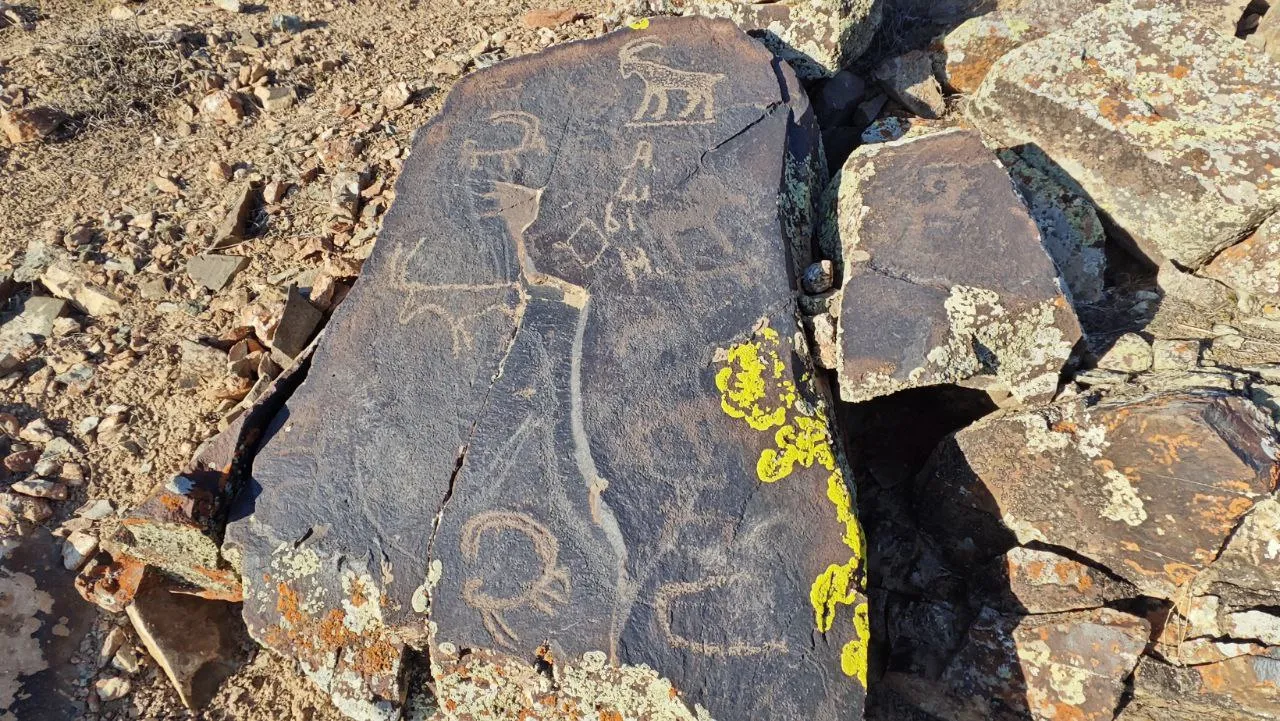 | Аймактын чек аралары жана коргоо зоналары | Петроглифтер өзүнчө, бир калыпта эмес топтор болуп, бир топ аралыкка чачырап жайгашкан. Шарттуу түрдө алар 4 топко бөлүнөт. Ар бир топтун айланасында алдын ала коргоо зонасы белгиленген. Жалпысынан бул зонанын аянты 56 гектарды түзүп, четки объекттерден 80–100 м радиустагы аймакты камтыйт. Коргоо зоналарынын долбоору иштелип чыгып, бекитилгенге чейин комплекстин коргоо зонасында ар кандай жер казуу иштерине тыюу салуу зарыл. |