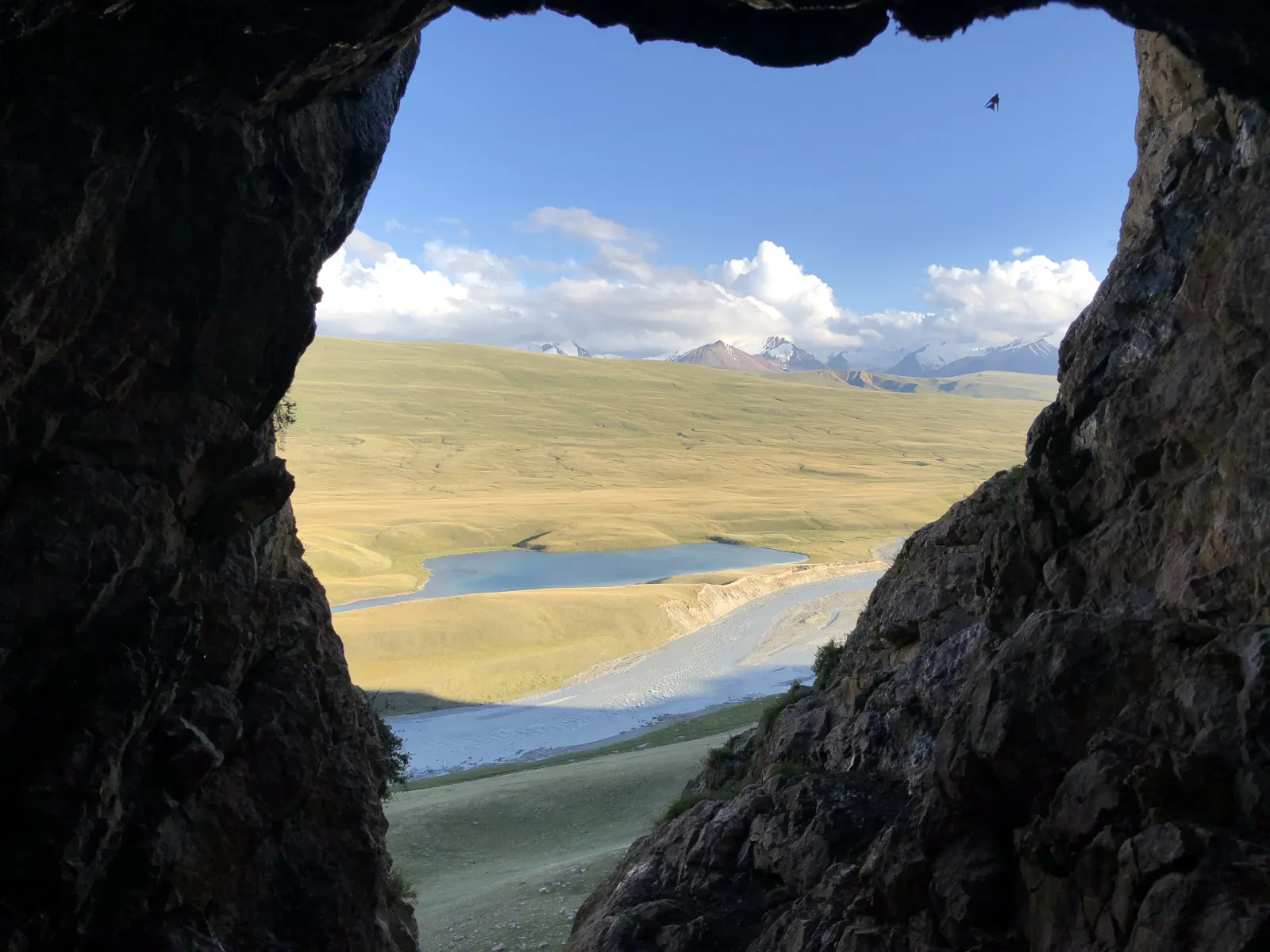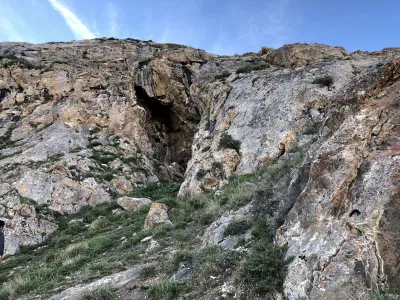 | Кошумча маалымат | Үңкүр кууш, ийри-буйру өткөөлү бар кире бериштен турат, кире бериштин формасы бриллиант сымал, жогорудан ылдыйга чейин созулган; Үңкүр Сары-Жаз дарыясынын жээгиндеги кичинекей көлдү карап турат, ал ориентир катары кызмат кыла алат. Үңкүрдүн дубалдары менен чатырын каптаган көө жана вандализмден улам бардык очерк чиймелер араң көрүнүүдө. Бардык чиймелер биринчи чоң бөлмөдө же залда жана кире бериштеги чыгыш дубалда жайгашкан. Сүрөттөр жаныбарлардын (эчки, жылан) сүрөттөрү менен берилген, кыязы, тотемдик, очер менен тартылган. Сүрөттөр үңкүрдүн дубалдарына жана шыптарына өзүнчө топторго бөлүнгөн. |
