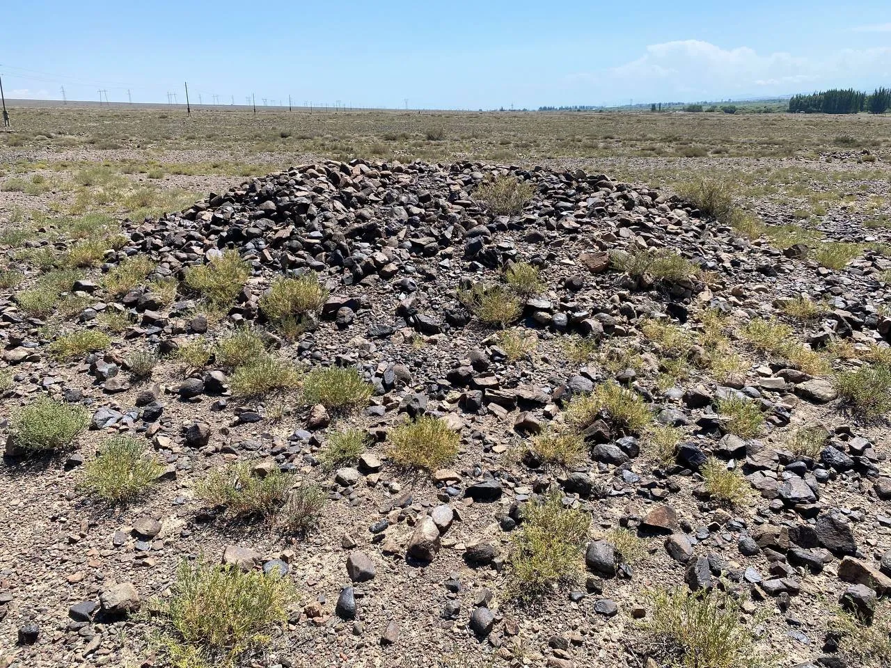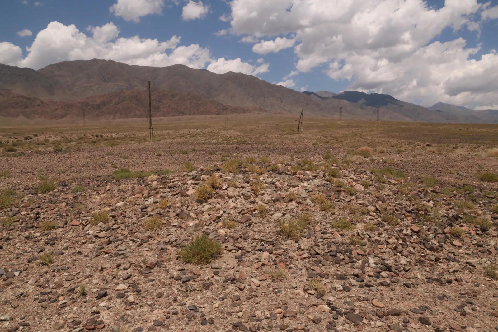 | Кошумча маалымат | Көк-Булак V көрүстөнү эбегейсиз аянтты ээлеген көрүстөндөрдүн чоң комплексинин бир бөлүгү. Комплекстин узундугу чыгыштан батышка 6 км, түндүктөн түштүккө 1,2 кмге чейин жетет. Көк-Булак V көрүстөнү Көк-Булак IV көрүстөнүнөн 290-430 м батыш тарапта жайгашкан. Ал 61,3 га аянтка чачыраган 180ге жакын таш жана таш топурак дөбөлөрдөн турат. Кээ бир жерлерде дөбөлөр түштүктөн түндүккө созулган 4—11 дөбөдөн турган аздыр-көптүр регулярдуу чынжырларга топтошкон. Кээ бир дөбөлөр бул чынжыр-топтордон тышкары, туш келди чачырап жатат. Дөбөлөр тегерек формада, диаметри 4 мден 13 мге чейин, бийиктиги 1 мге чейин жетет. |