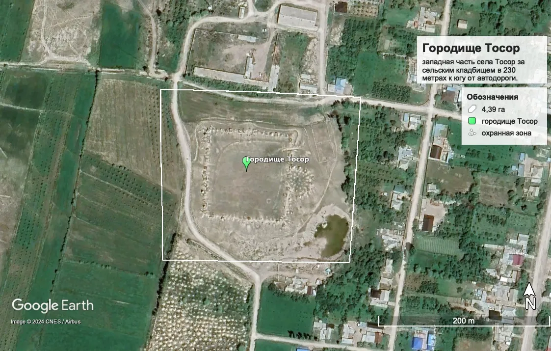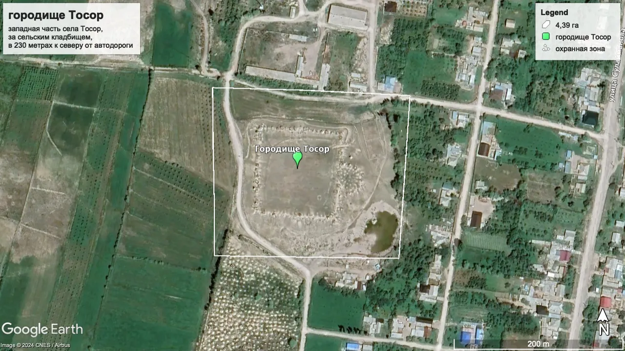 | Аймактын чек аралары жана коргоо зоналары | Тосор конушунун алдын ала коопсуздук зонасы 4,39 га аянтты ээлеп, конуштун аймагын жана конуштун дубалдарынан 50 метр аралыкта ага чектеш аймактарды камтыйт. |