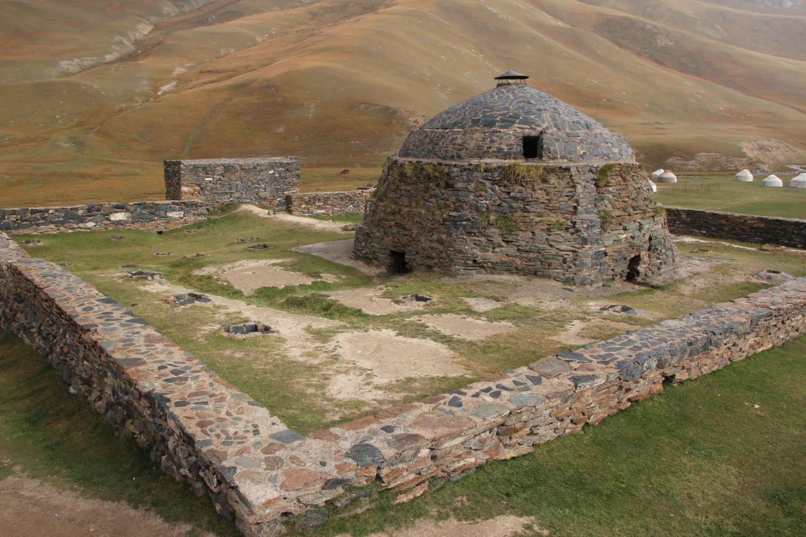 «Имарат чополуу сланец жалпак плита таштардан курулган, узундугу 12, туурасы 7 саржанча келет. Узун коридорду улай тегерек зал (радиусу 5 кез), үстү айдөш тоголок болуп кетет. Коридордун капталдарында кичинекей жана жапыз эшиктери бар, алардан чарчы, чакан бөлмөлөргө өтөт. Бул имарат бир кезде сыртынан да, ичинен да шыбалса керек».